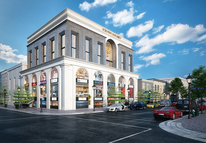 - Façade and material detailing